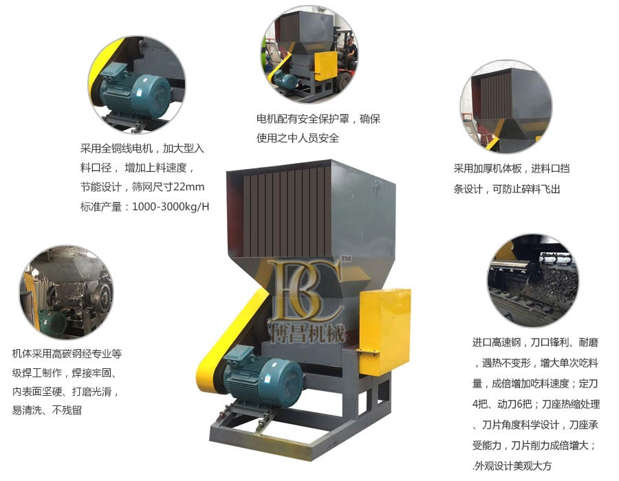 3、強力破碎機起動前,先用手轉動轉子,檢查一下齒爪、錘片及轉子運轉是否靈活可靠,破碎室內有無碰撞現(xiàn)象,轉子的旋轉方向是否與機箭頭所指方向一致,動力機及塑料破碎機潤滑是否良好。